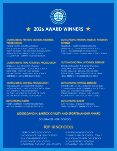 The mission of the San Diego County High School Mock Trial Competition is to foster understanding and respect for the American legal system and for the rule of law. The competition develops high school students into better informed citizens by familiarizing them with our Constitution and Bill of Rights. The competition enhances students’ ability to think critically, communicate effectively and work together.